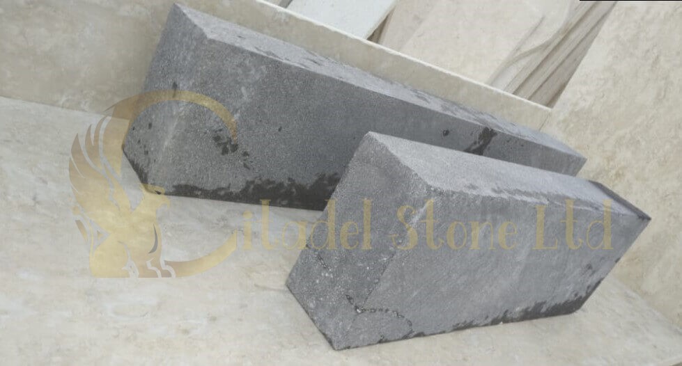 Basalt Curbing: Volcanic stone combining exceptional hardness, minimal porosity, and contemporary dark aesthetics. Ideal for modern properties, high-traffic applications, and cold climates requiring superior freeze-thaw resistance.