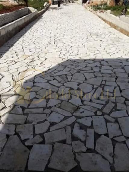 Elevate your outdoor space with the timeless beauty of White Limestone Patio Pavers. Crafted in random sizes. This limestone paving boasts a pristine white color and a natural sawn finish, adding an elegant touch to your private or industrial projects. Cut from beautiful limestone, they not only bring aesthetic appeal but also offer versatility in landscaping and decorative applications.